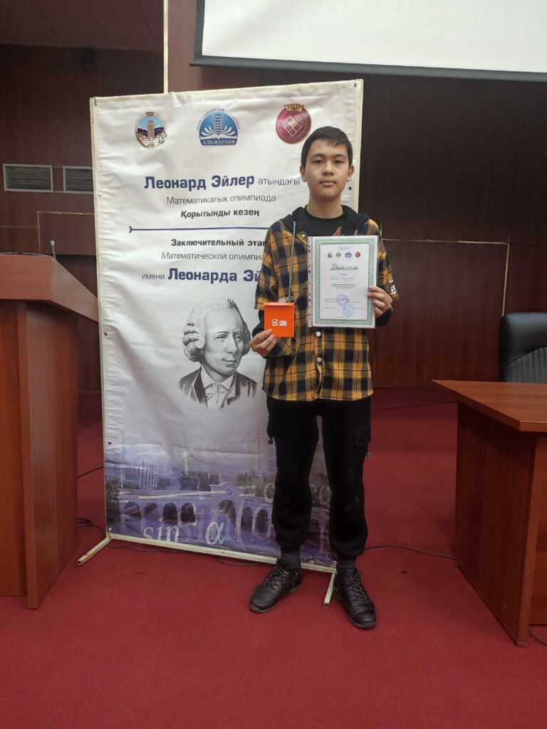 Набрав 46 очков и став абсолютным победителем олимпиады Эйлера среди учащихся 6-8 классов, Маргулан получил подарок от спонсора, а также Диплом первой степени.
