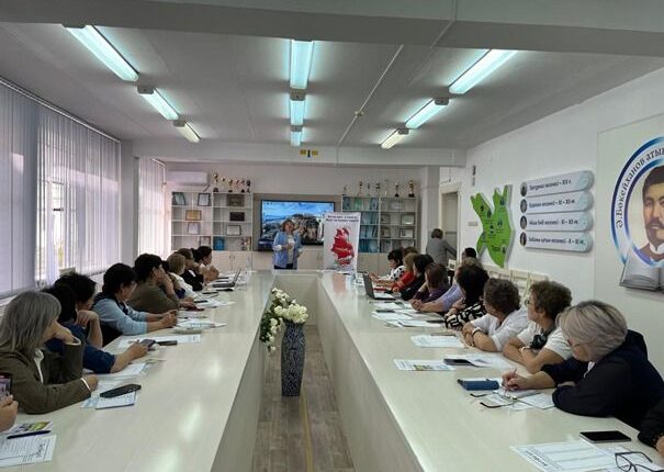 Келесі кезекте облыстық білім басқармасының оқу-әдістемелік орталығының әдіскері Мадина Белғожаева «Кітапхана – ақпараттық сауаттылық мектебі», Жамбыл ауданы