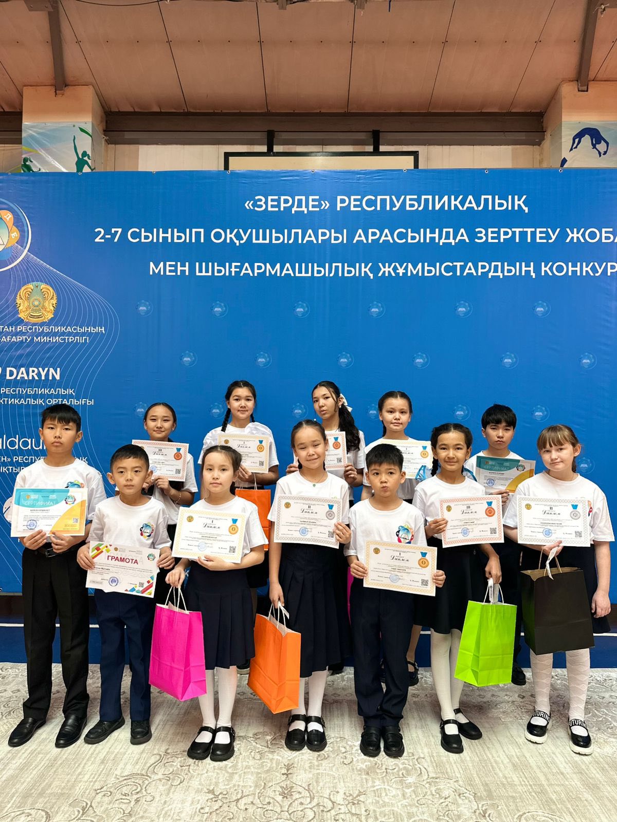 Сондай-ақ білім бәйгесінде Тараз қаласындағы №11 орта мектебінің 3-сынып оқушысы Анастасия Казанцева, Қ.Тұрысов атындағы №53 мектеп-гимназиясының 5-сынып оқушысы Эльнара Үшкемпір ІІ дәрежелі Дипломдармен, Меркі ауданы, И.Трубицын атындағы N17 жалпы орта білім беретін мектеп-гимназиясының 7-сынып оқушысы Айару Қалдыбек, Қ.Тұрысов атындағы №53 мектеп-гимназиясының 4-сынып оқушысы Іңкәр Нұржігіт, «Дарын» мектеп интернатының 7-сынып оқушысы Адия Сабденова ІІІ дәрежелі Дипломдарға лайық деп танылса, — Қордай ауданы, Булар Батыр атындағы №19 орта мектебінің 3 сынып оқушысы Мустафа Масанов, Жамбыл ауданы, Айша бибі орта мектебінің 4-сынып оқушысы Ердәулет Бейсен және Б.Момышұлы атындағы №45 классикалық гимназиясының 6-сынып оқушысы Ескендір Оралбек арнайы Грамотаға қол жеткізді.